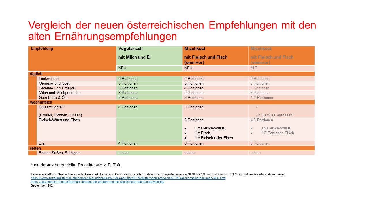 Mitte 2024 wurden neue österreichische Ernährungs-Empfehlungen veröffentlicht.