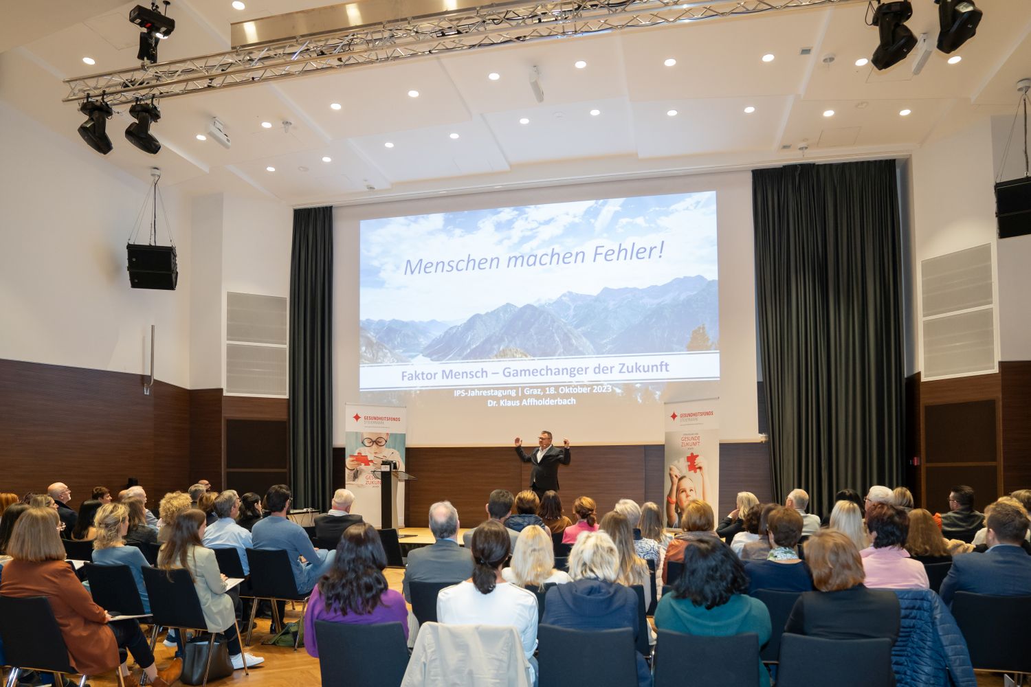 Klaus Affholderbach, promovierte Hochenergie-Physiker und Privatpilot, zeigte sich in seiner Keynote überzeugt, dass der „Faktor Mensch“ der Gamechanger der Zukunft ist. Er hat 20 Jahre Führungserfahrung in der Schweizer Flugsicherung und erläuterte, wie es die Luftfahrt in zwei Jahrzehnten geschafft hat, zur sichersten Transportart zu werden. Dies könne ein Vorbild für andere Branchen, etwa das Gesundheitswesen sein. Eine positive Unternehmenskultur – insbesondere einer förderlichen Fehlerkultur – hat dabei eine besondere Bedeutung. Außer Frage steht lt. Affholderbach aber auch, dass es beim Einführen neuer Kulturen Rückschläge zu überwinden gilt. Wichtig sei dabei, ein Prinzip einer „förderlichen Fehlerkultur“ zu leben.