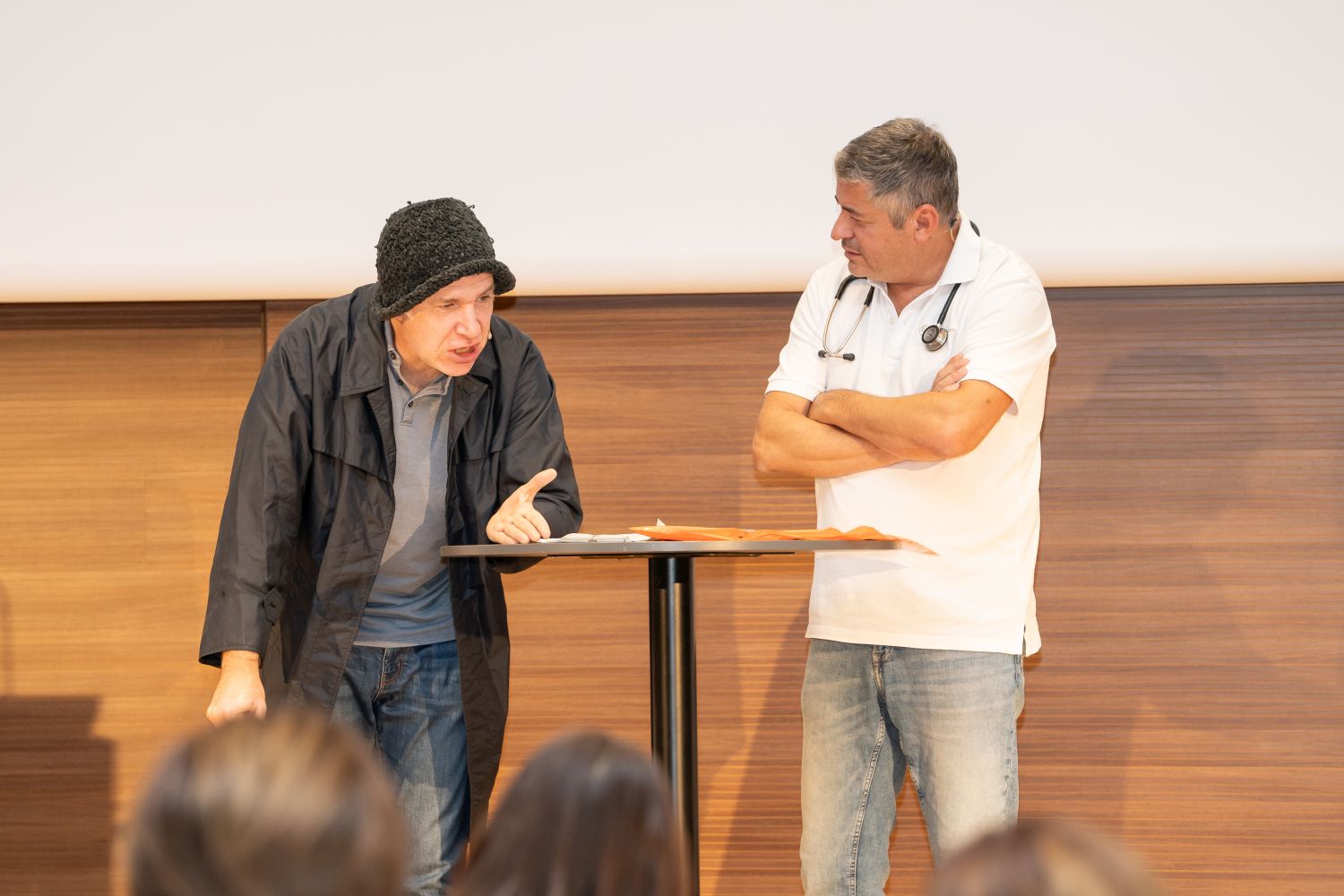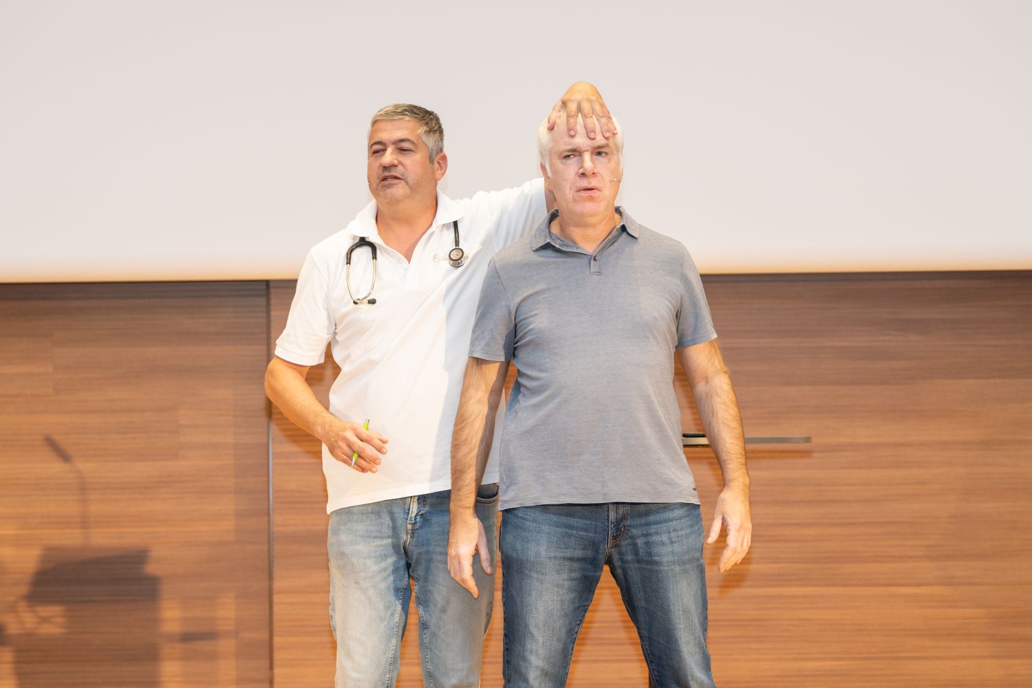 Den Abschluss der IPS-Jahrestagung bildete ein Medizinkabarett namens „Wechselwirkung“ von Peter & Tekal. Der Arzt Ronny Tekal, der als studierter Mediziner natürlich auch Universalgelehrter ist, sowie sein Patient Norbert Peter, der vor der Darmspiegelung hoffentlich als Universalgeleerter zur Untersuchung kommt, brachten Licht in die dunkelsten Interaktionen. Die preisgekrönten Meister medizinisch gepflegter Unterhaltung zeigten im neuen Programm in gewohnter Weise, dass nicht nur eine Krankheit, sondern auch Lachen ansteckend sein kann. Weil alles mit allem ja dann doch irgendwie zusammenhängt.