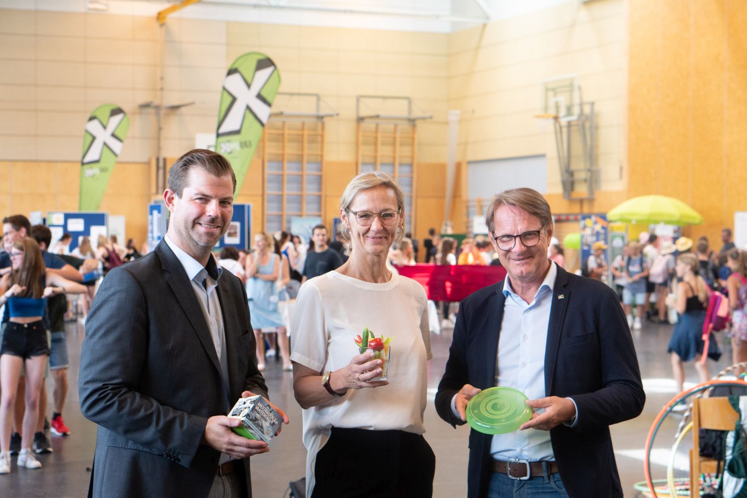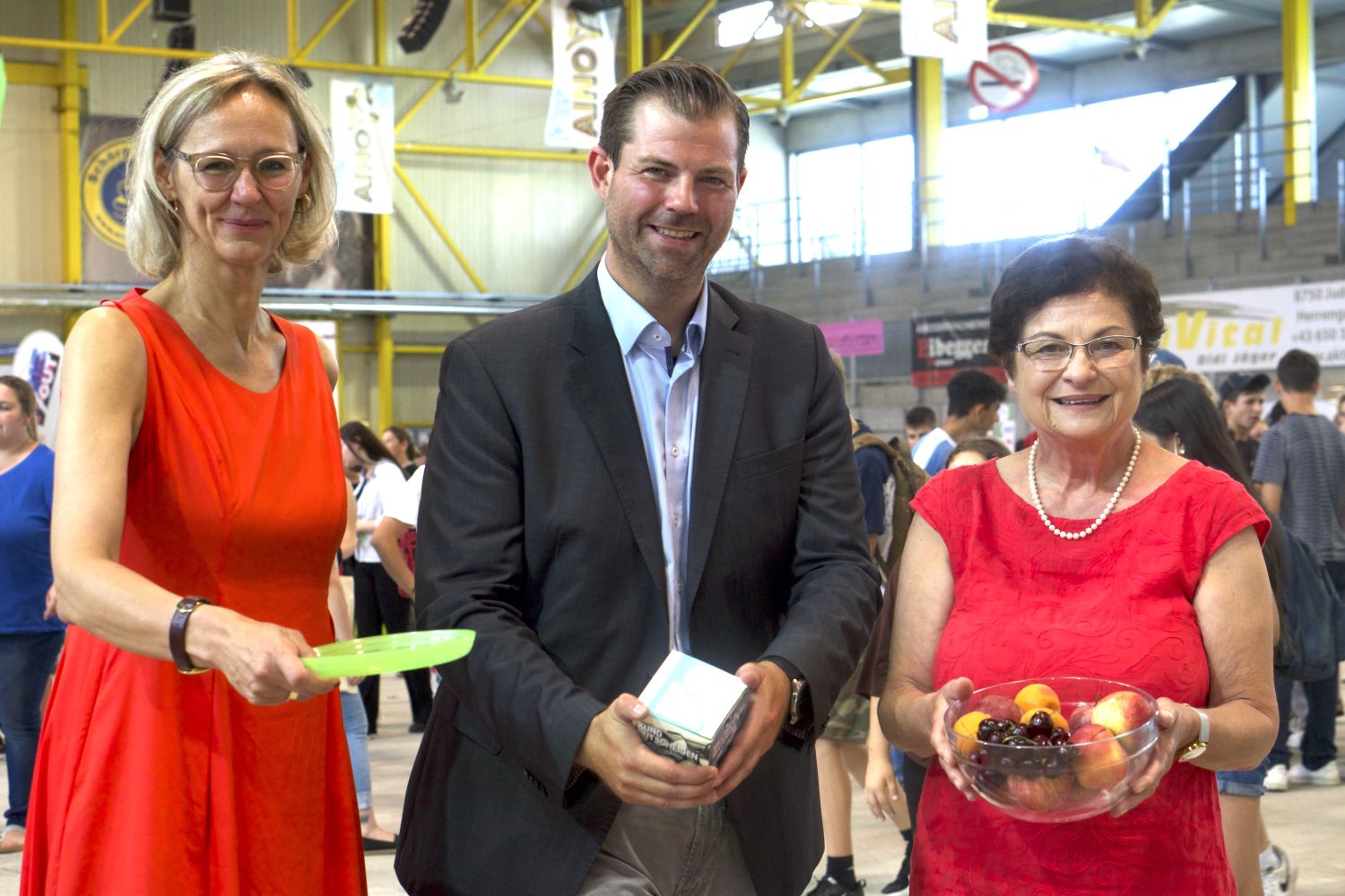 Bild links (Hartberg): v.l. Johannes Heher und Uschi Theißl (LOGO), Marcus Martschitsch (Bürgermeister von Hartberg)