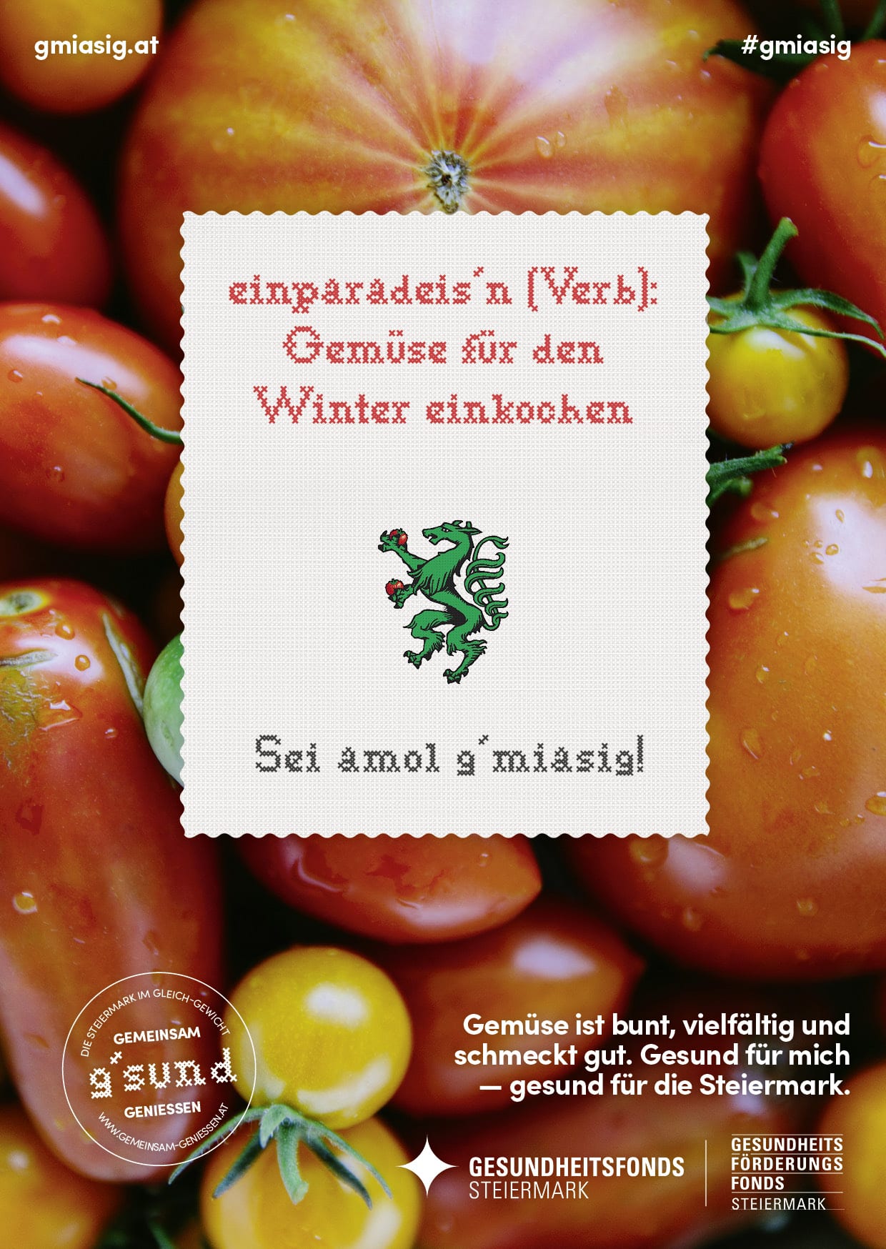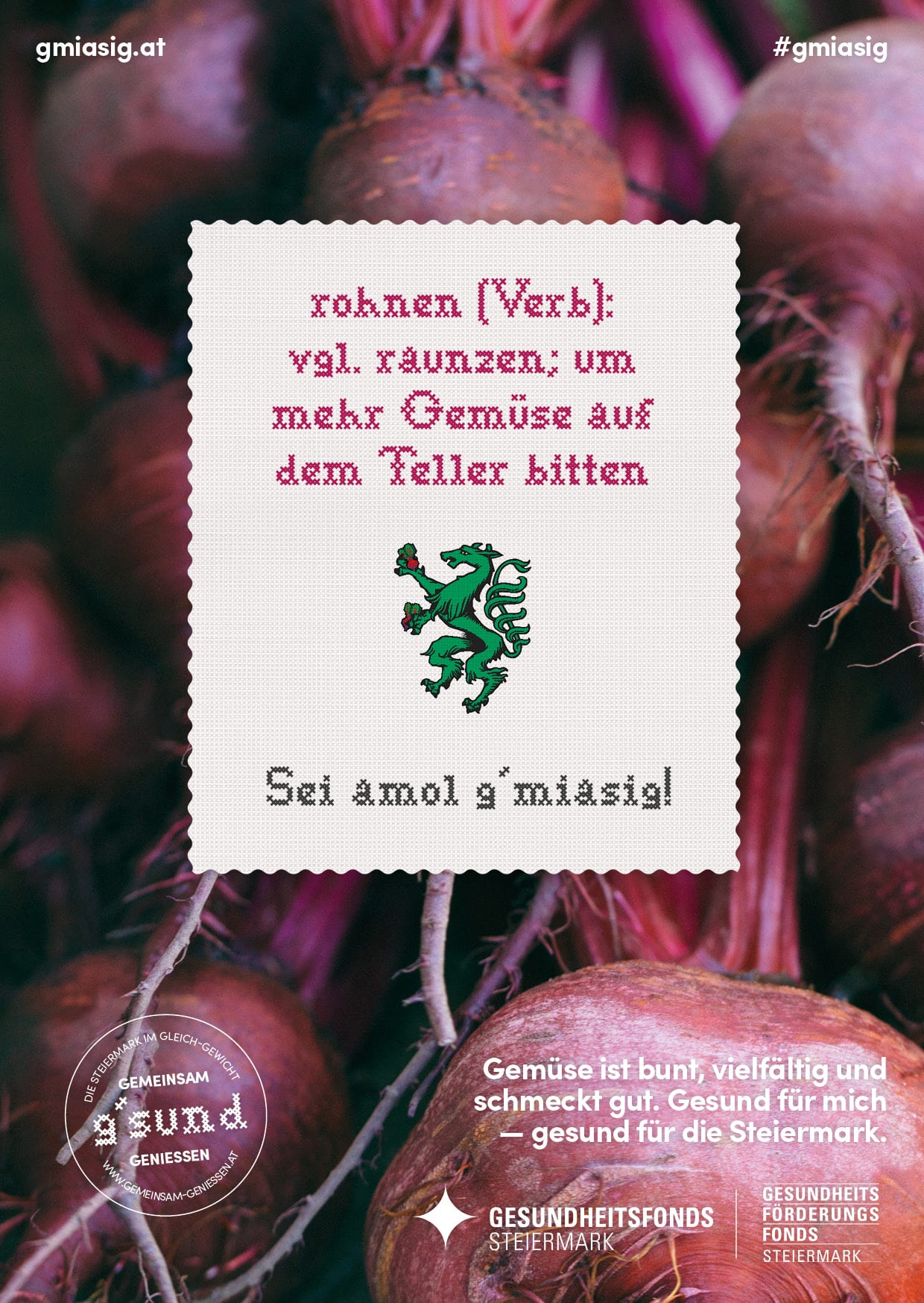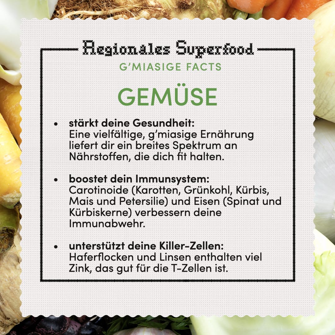 Wenn es um gesunde Ernährung geht, haben die Steirer*innen noch ein bisschen Aufholbedarf: Besonders beim Verzehr von Gemüse hinken sie der Empfehlung von drei Portionen pro Tag hinterher. Nur ein Drittel der Jugendlichen und nur die Hälfte der Erwachsenen essen täglich Gemüse. Wir meinen: Das muss sich ändern! Deshalb arbeiten wir aktiv im Rahmen unserer Maßnahmen und Projekte daran bzw. bieten hier Informationen und Ideen für mehr Gmias am Teller an!